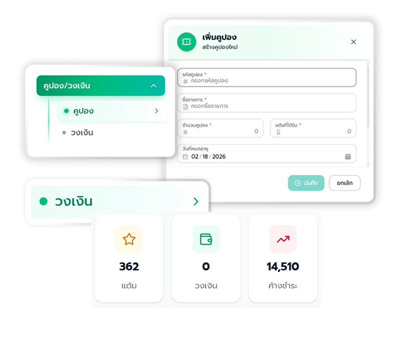 • ระบบแต้มสะสมและคูปอง สร้าง Loyalty Program เพื่อรักษาฐานลูกค้า