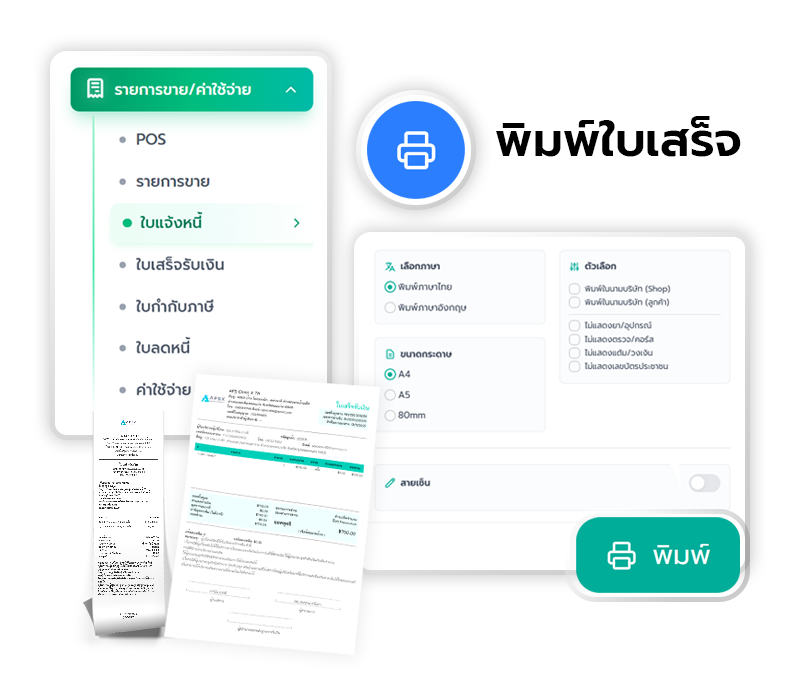 ออกใบแจ้งหนี้ ใบเสร็จรับเงิน ใบลดหนี้ และใบกำกับภาษี
